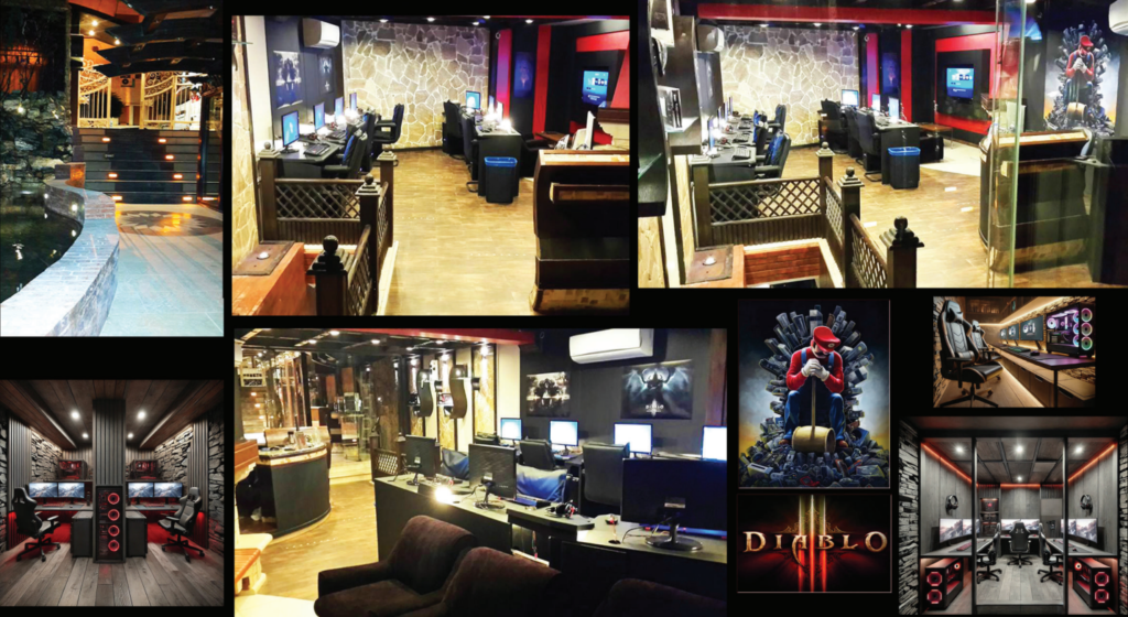 Throne of Games delivers an immersive gaming experience, blending iconic video game aesthetics with a bold dark palette, stone walls, and wood accents. Designed for competition, socializing, and immersion, its ergonomic setups and thematic decor amplify excitement, focus, and camaraderie.